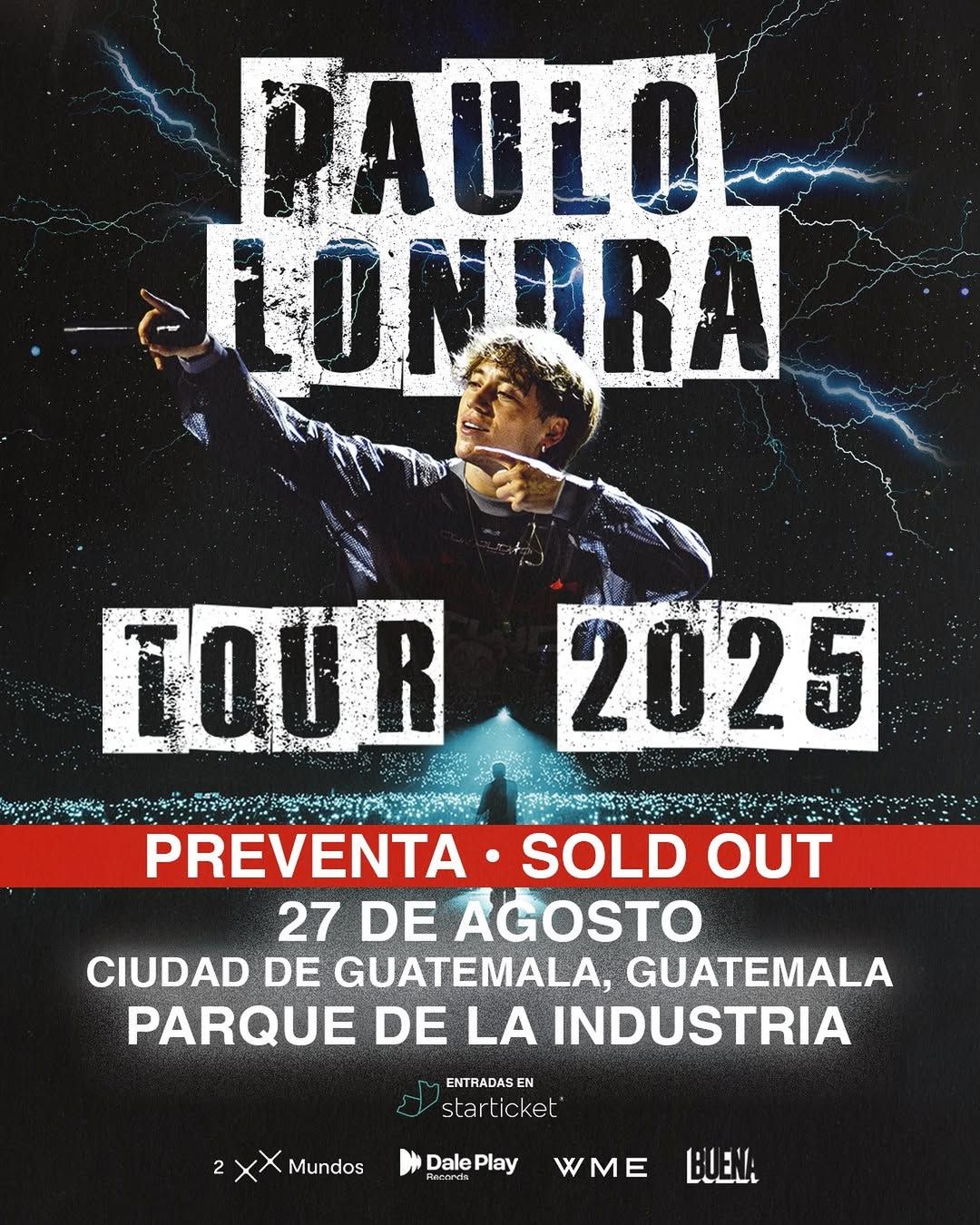 🇦🇷 Paulo Londra regresa a #Guatemala y ya hizo el primer sold-out de preventa. Mañana a las 10 AM se abre la venta general. Poné la alarma que se agotan